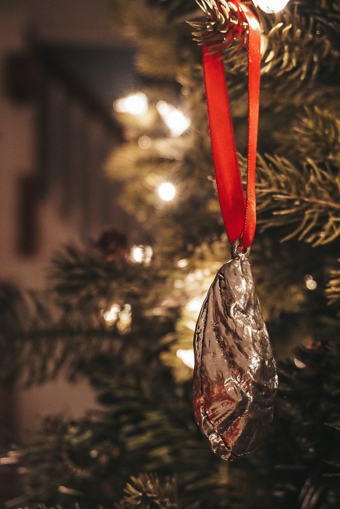 Each piece arrives in a petite canvas jewelry bag stamped with their wonderfully simple logo giving your item a safe place to nestle when not in use. Our Oyster Shell Christmas decoration has found a new home amongst other ornaments in our bauble box, ready to emerge each year for a special place on the tree.