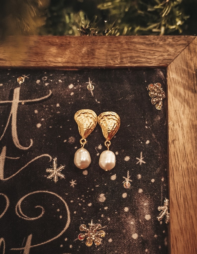 And classic holiday style wouldn’t be complete without a pair of their St. Michael’s Post earrings. Simple and elegant, these bijou will elevate your home holiday style. And when not in use, they will sit perfectly in a gold oyster shell on your bureau.