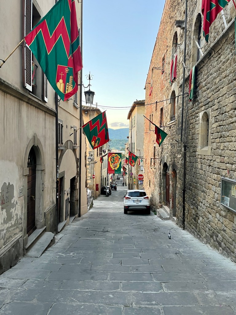 We had a day between Rome and Florence that needed filling and so the thought was to find a small safe town or city to explore for half a day and lay our heads that night. An hour of research produced Arezzo – a small commune in the Tuscan hills, just past Orvieto and Montepulciano. Ideal for its quiet and quaint nature, we happily found accommodation right off the city center at the Scacciapensieri Guest House. Ten minutes after piling in a cab, we found ourselves among stone streets lined with sun-bleached homes, medieval flags, local artisans, and lots and lots of wine.